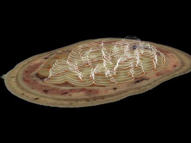 Muy buenas. Os cuento. Toy haciendo unos sesos de un menda. Lo estoy haciendo a base de lonchas del cerebro y de Splines. Luego he pensado en unirlas con otras Splines y añadirle el modificador surface. Pero aquí ta el problema, muchísimo trabajo.
