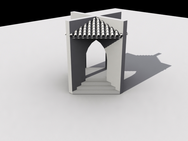 Lo de las tejas lo arreglé suavizando los polígonos de estas, pero con el intradós de los arcos no sé qué hacer, fijaros bien en la parte de dentro de los arcos y veréis lo que digo.