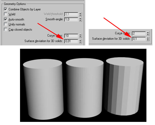 Buenas Pepe, esta es la configuración de arcos y suavidad que uso yo para los dibujos que exporto al 3ds y quedan bien. Espero que te sea de ayuda.