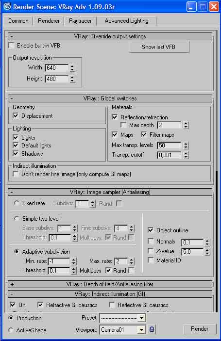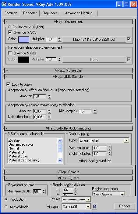 Uso 3d Studio Max 7 con Vray. Chicos la verdad es que estoy desesperado, hago mil cambios y no veo mejoras. El proceso de iluminación lo hice siguiendo un tutorial de 3dyanimación de iluminar exteriores y lo hice más o menos igual.