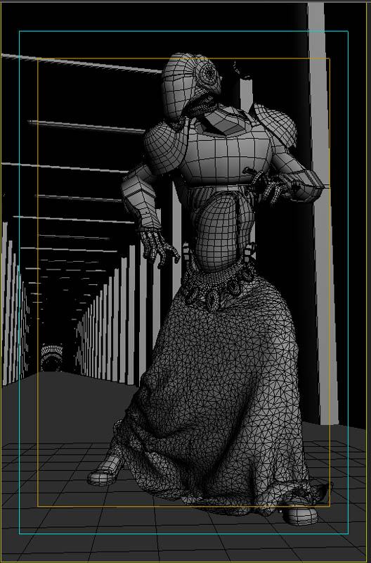 El método a seguir principalmente fue el modelado a partir de cajas. En ocasiones modelé con Splines partes como el casco o las hombreras. En la primera fase los modelos se realizaron en baja poligonización, para después trabajarlos en ZBrush y volver luego a max, aplicando los mapas de desplazamiento generados por este.