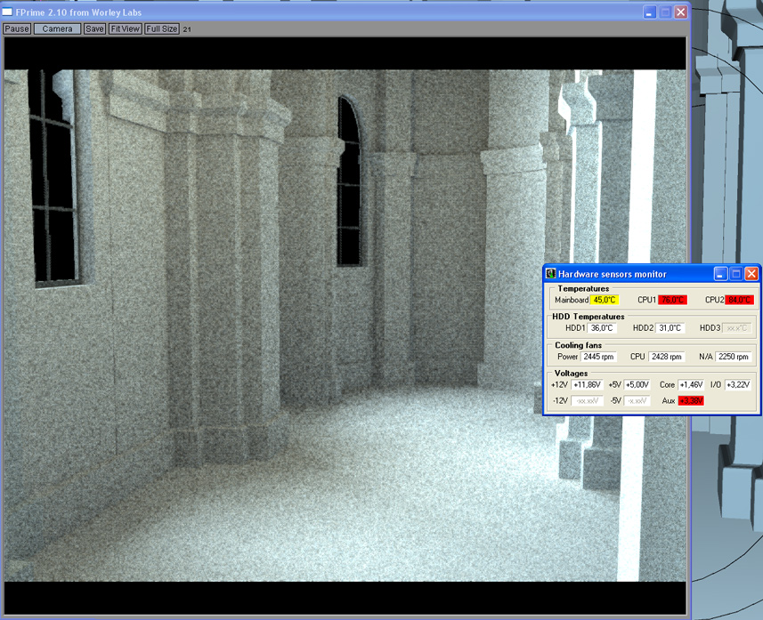 7 minutos de render y estas son las temperaturas y rpm. Los dos parámetros que estaban en algún color desde el propio son.