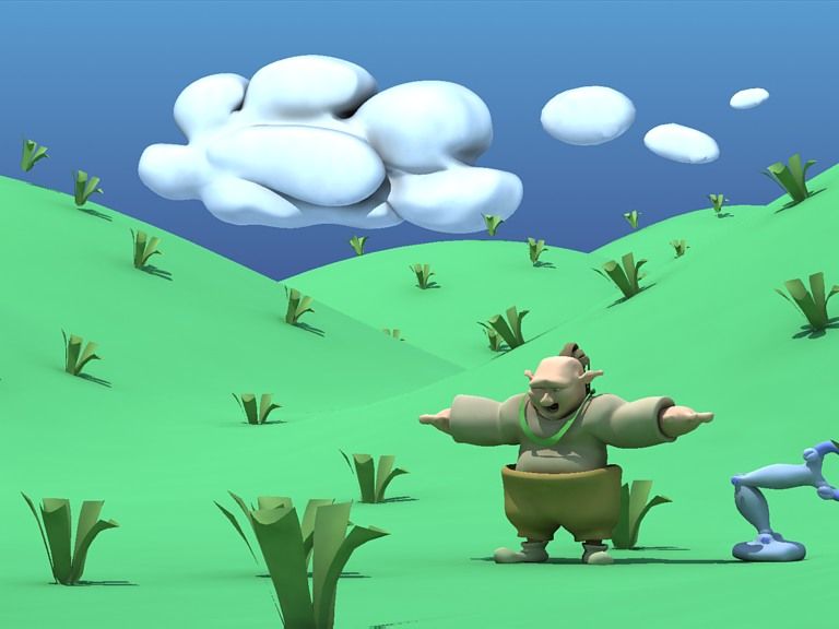 Buenas, así es como llevo la animación del bicho. Tengo todo modelado, ahora a meterme con lo fácil. Bueno, tengo problemas con él scatter, a la hora de poner los hierbajos, algunos se me quedan en el aire. Un saludo.