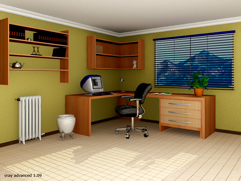 Un pase de Ambient Occlusion te pegaría bastante las cosas al suelo. Veo muy oscura la esquina con respecto al resto de la imagen. Ánimo.