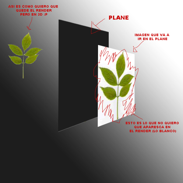 He buscado tutoriales y todo, pero no puedo concontrar solución a mi problema, resulta que quiero poner una textura a un plane pero la idea es que, al hacerle el render solamente aparezca la imagen y no lo que rodea a esta.osea lo que sobra del plane, no sé si me explico voy a poner una imagen para tratar de graficar un poco mi duda.
