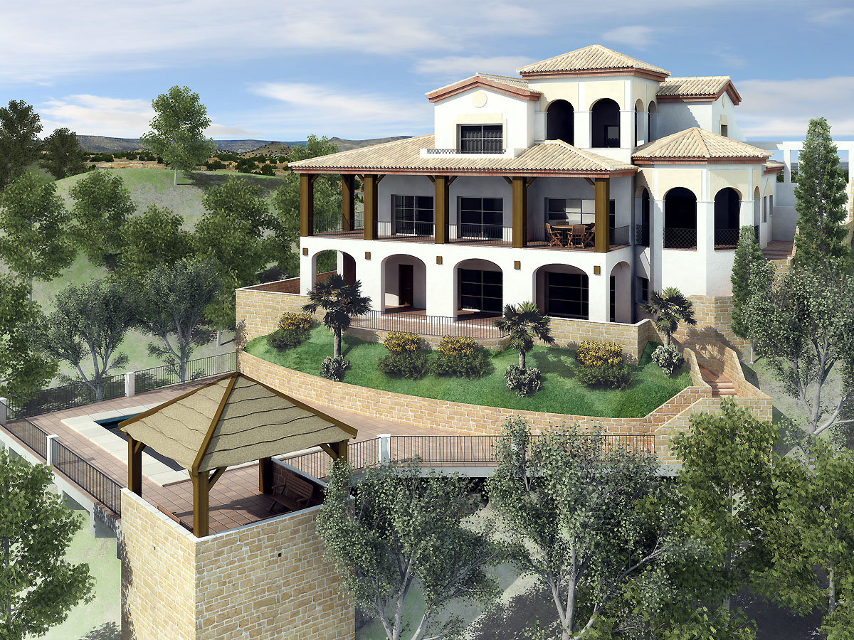 Trataria de darle mayor calidez, quizás con una iluminación más impactante, cambiar el ángulo de la cámara para darle mayor importancia a la casa, buscar más contraste entre el terreno y la construcción, es decir tratar de darle un toque de mayor atractivo visual, más personal. Ahora esta todo muy homogéneo, uno ve la imagen y a primera vista distingue uno la casa, pero después empieza uno a distraerse con todos los demás elementos de la escena.