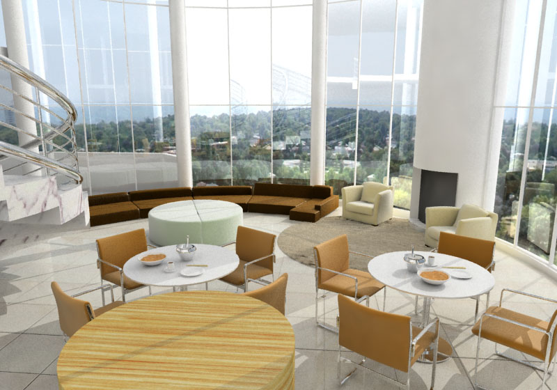 Buenísimo, la iluminación es muy destacable. Aunque no me convence la textura de madera de esa mesa redonda que parecen buzones abiertos (la que está al lado de las 2 mesas blancas).