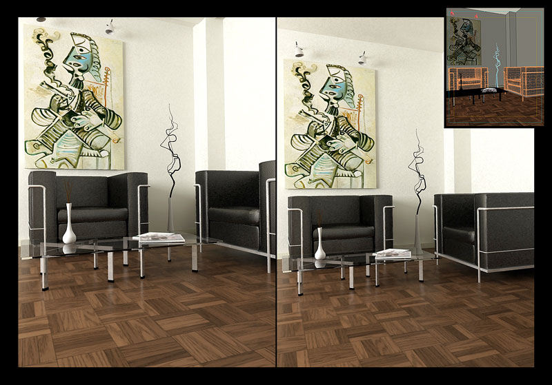 Hola a todos, hace tiempo que no publico nada, supongo que, por falta de tiempo. Les dejo aquí el primer render que hice del 2006, intento sacar un render que se vea lo más real que se pueda (creo que todavía me falta largo camino), pero díganme de esta escena que le falta para que quede lo más real posible en cuestión de iluminación.