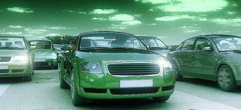 Creo que está bien, aunque está muy saturada con un solo tono de verde, y me parece que no debería ser tan nítida la reflexión del vehículo en primer plano, pero por lo demás me gusta el concepto general.