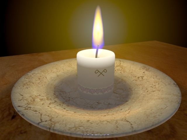 Ok, vamos a ver. La textura de la vela en realidad no existe o dicho de otro modo, no es un material texturizado, se supone que imita la parafina de las velas ornamentales que por otro lado, es bastante lisa, no tiene goteo porque eso también es propio solo de las velas de cera, y la intención original era la de intentar conseguir un buen efecto de iluminación difusa sin usar un material Ray Tracing (y, por lo tanto, obtener un render veloz, sobre todo porque lo necesitaba para una escena con muchas velas), tienes razón sobre el halo o resplandor (aunque no está alrededor de la vela, sino en el punto de máximo brillo de la flama) está demasiado bajo, pero esto es culpa, fundamentalmente de Fénix que lo ubica allí (y mía por dejarlo hacer lo que quiere,) De todas formas, el efecto me pareció bonito, aunque es plenamente cierto el hecho de que no es realista, lo corregir? Aunque lograr un resplandor de vela verdaderamente realista es un tanto complejo pues el brillo de una flama no es puntual, en cuanto al pabilo, la verdad no es recto para nada, Lo que ocurre (y eso también es mi culpa) es que la cámara está en un ángulo desde el cual (hay 2, el otro está a 180 grados del primero). Se ve sobre el plano de curvatura (o casi) por lo que la curvatura del mismo no sé nota, por otra parte, los pabilos reales tienden a ser bastante rectos dado que se consumen a medida que se consume la vela por lo que tienden a curvarse muy ligeramente. Saludos.
