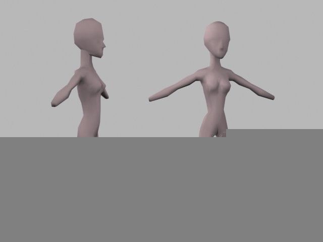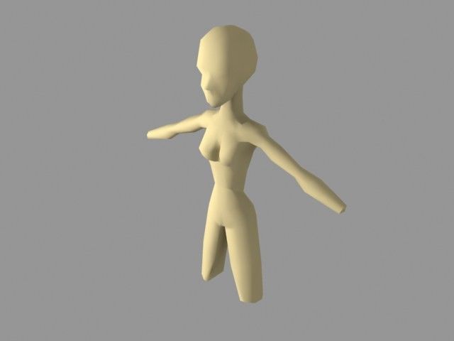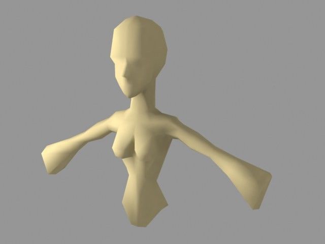El modelo algo más avanzado. He retocado bastante geometría, aunque apenas se aprecia. No obstante, aún queda mucho por hacer, el contador marca 466 polígonos. Dios, que ignorante Son el doble, (aunque se vean cuadrados, son 466 triángulos en realidad). Ahora empezaré a refinar la malla, meterle un poco más de detalle en el rostro y articulaciones, y luego, a Unwrapear.