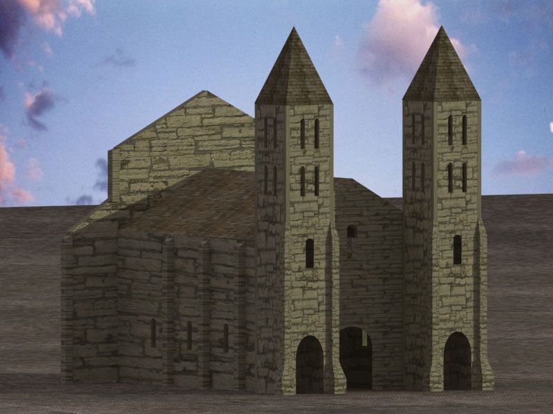 Digamos que ya tocaba. Ahí va una iglesia románica en qué Estoy trabajando hace tiempo, aquí tenéis sólo el nártex desde el exterior (la iglesia entera ocupa unas tres veces más). De momento Estoy haciendo pruebas de luces y de texturas, pues ale, a criticar. Higronáuticos saludos.