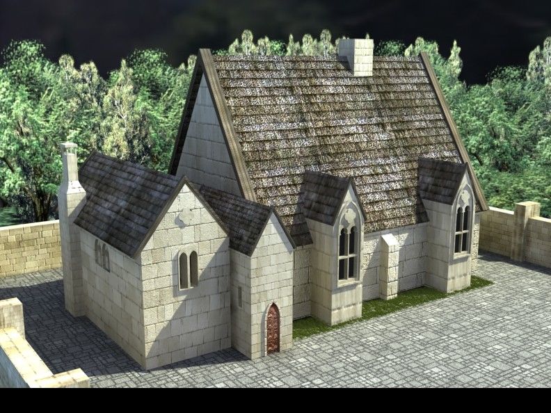 Quizás le falte algo de suciedad. El Bump de la cubierta se nota bastante en la zona iluminada. La escala de la textura de la iglesia me parece un poco extraña, me resulta más real la del muro perimetral, creo que le faltan un par de toques para personalizar un poco más el render, pero en general ha quedado bien, los tonos son agradables y similares y las texturas en mosaico se integran bien. Saludos de Drakkhen rotor.
