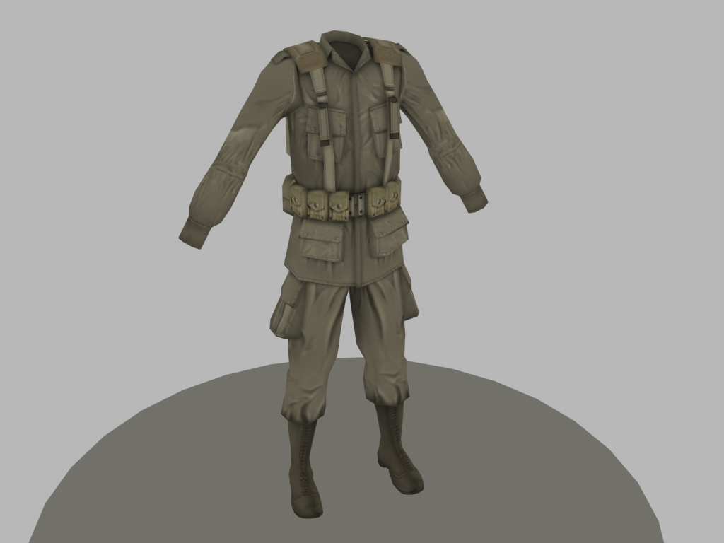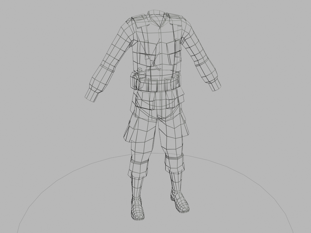 Buenas a todos. Estoy aquí haciendo como que pinto en Adobe Photoshop y estoy realizando un modelo en Low (ejems, más o menos, este lleva 2000 caritas) de un soldado de la aerotransportada. Como es para una aplicación que estoy programando no me preocupa dejar este modelo en 3000 caras porque tengo quehacer otras dos versiones en 1500 y 1000.