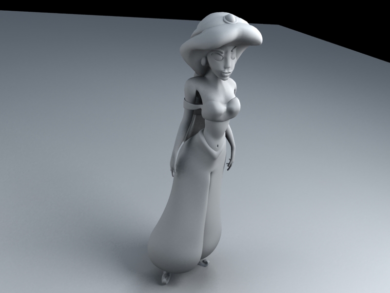 Muy buenas, he tenido un rato hoy y me he liado a modelar a jasmine de la película aladdin de Disney, en general para haberlo modelado en la mañana estoy contento con el resultado, a excepción de la cara que la quiero volver a hacer, ya que parece un? U, digo un alien.