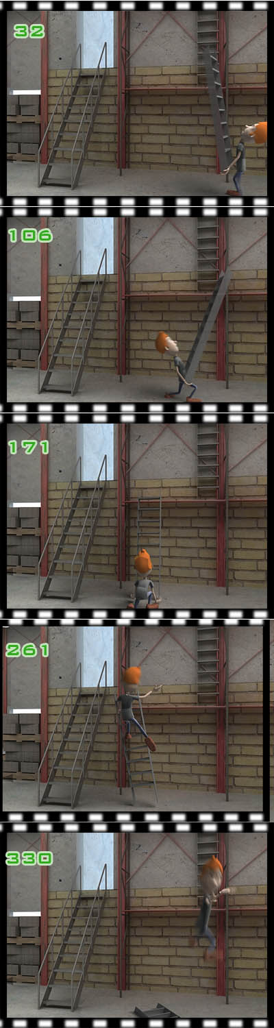 Bueno, estoy dando mis primeros pasos en animación, de ahí que necesite consejos al respecto. Ahora mismo estoy testeando una secuencia donde el personaje sube a un adamio y luego cae al suelo, total 12 segundos.