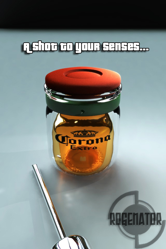El recipiente está bien, pero si lo de abajo pretende ser una jeringuilla, el material es demasiado cromado, y la aguja debería acabar cortada en ángulo.