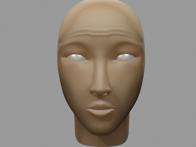 Observa que en la vista frontal la cara tiene los ojos un poco grandes o están desplazados unos milímetros hacia ambos lados, además la boca es un poco angosta, y también le falta un poco más de cráneo arriba, todo esto es milimétrico, pero esto es suficiente para darle un ligero look alienígena, no es broma, te pongo un ejemplo de cómo ajustándote un poco más a los cánones reales l cabeza gana más credibilidad.