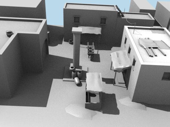 Hola, cuando me pongo a observar trabajos en este foro, la maioria son edificaciones, eso es algo que yo nunca hice y me propuse hacerlo, se trata de un pequeño poblado sajharíano o algo así, aún me queda mucho, pero quería saber vuestra opinión, es la primera vez que modelo edificios.