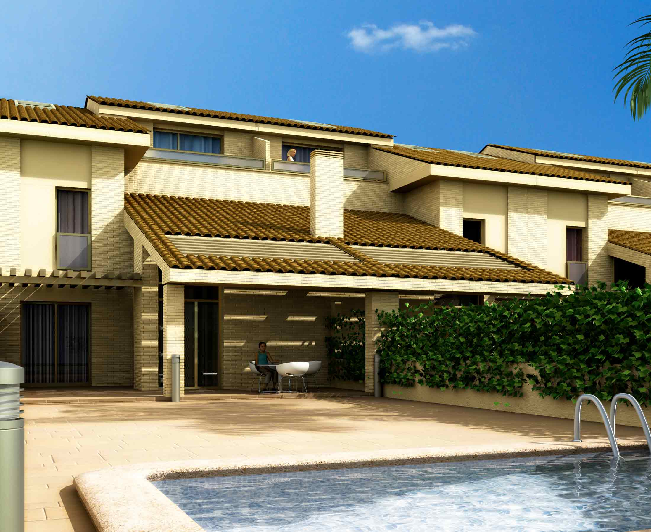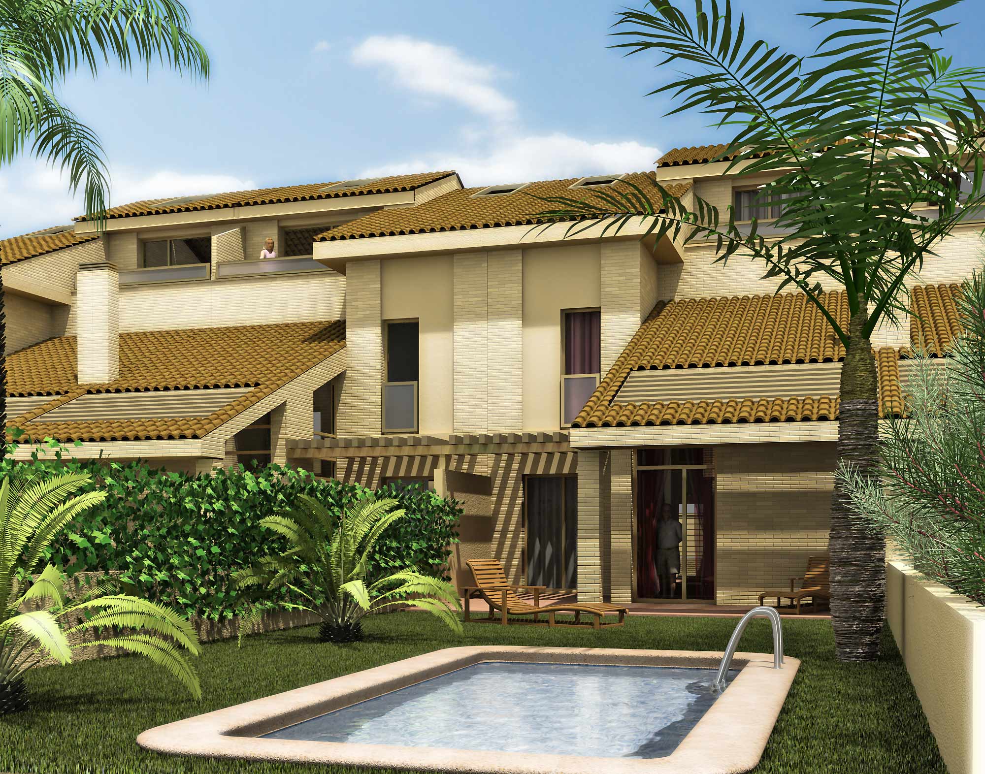 El render se ve bastante bien ambientado, quizás alguna planta, toldito o algo que le de más vida a la fachada, por ejemplo, en los balcones. O la típica toalla en la tumbona.