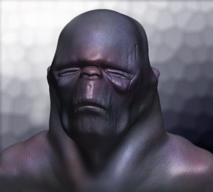 Un trabajo que puedo decir que está finalizado lo hice hace unos meses. Este y el zombie que tengo por ahí son el resultado de irme por las ramas en la tercera o cuarta lección (es obvio por lo chapucero) del tutorial ese de Gnomon por alex Álvarez.