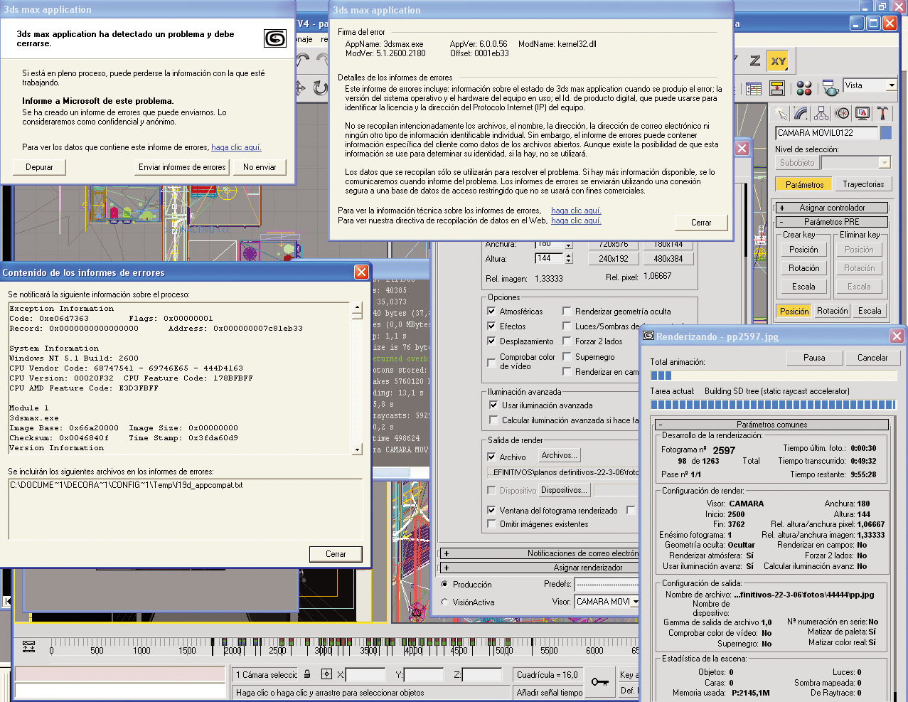 Hol, que tal, como digo en el título del mensaje, el 3dsMax 6 me genera este error cuando tengo hechos unos 100 fotogramas, a que puede ser debido esto? Gracias por vuestra ayuda. Un saludo.