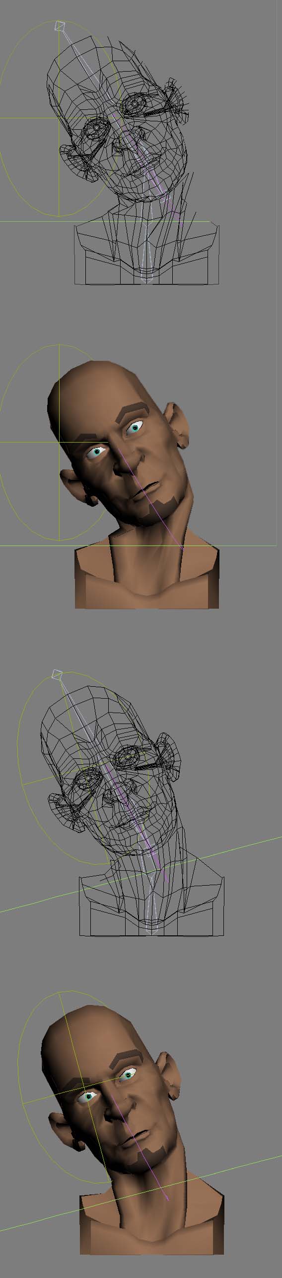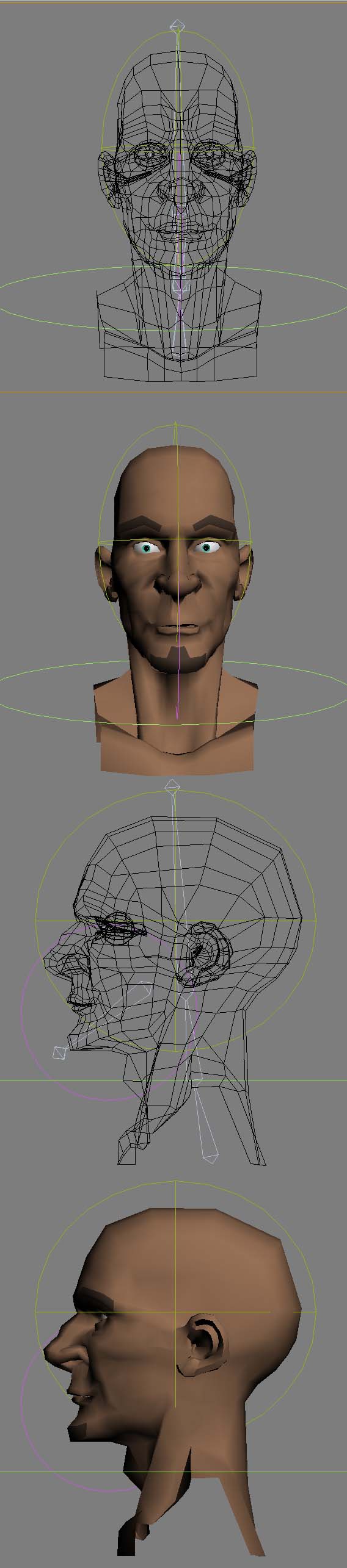 Ya que estoy jugando con el modelo (que aún no hace mucho, abre y cierra los ojos, sube y baja las cejas, tiene 2 tipos de sonrisa, una de ellas dividida para el lado derecho y el izquierdo, y la mandíbula), os mando una preview para que me comentéis cómo lo veis.