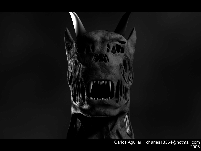 Vaya tienen mucha razón amigos. Primero lo hice en 3ds Max y era a colores, pero decidí ponerlo en blanco y negro, la luz que sale en uno de los cuernos se apareció ucnado lo puse a blanco y negro, en ucanto a las texturas aún no sé muy bien texturizar, lo siento por eso, quería corregirlo porque lo que buscaba era que se vea putrefacto, pero por falta de tiempo lo deje así. Gracias amigos por sus críticas me sirven de mucho.