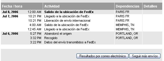 Ostias, te lo envían por fedex, hasta te mandan un email con el código de seguimiento. Ayer salió el paquete de Portlan, hoy estuvo en Memphis, ya ha salido para España.