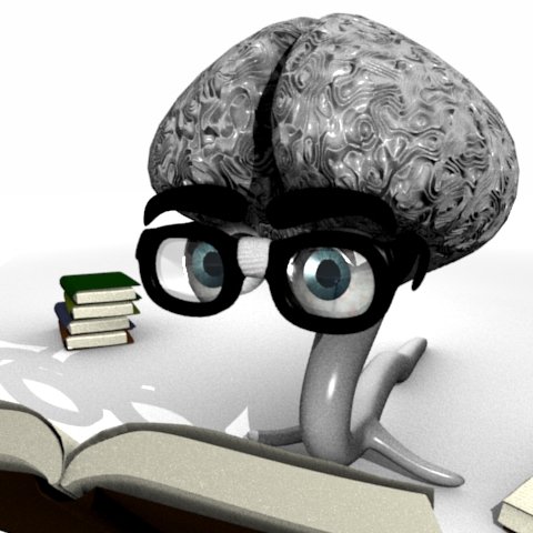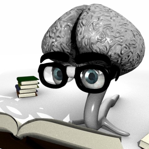 No sé, a mi el Shader del cerebro no me gusta nada. En lugar de parecer agrietado, es como si estuviera lleno de venas. Además, en lugar de esos brazos, creo que le quedarían mucho mejor otros un poco más humanizados, con manos(que podrían estar pasando página en la escena), y más cercanos a la cabeza. En conjunto la imagen esta simpática. Saludos.