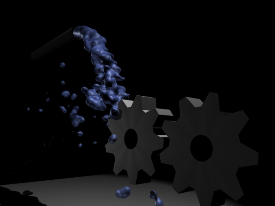 El último de hoy. Características del ejercicio: Las partículas influyen al primer engrane haciendo que gire, este a su vez ejerce una fuerza sobre el segundo para que haga lo mismo.