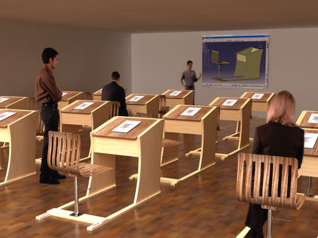 Estoy en medio de un curso de Catia y nos han mandado a hacer un pupitre que tuviera dos restricciones de movimientos, es el primer proyecto, y tengo que hacer una presentación del producto, está modelado en Catia y renderizado en 3dsmax.