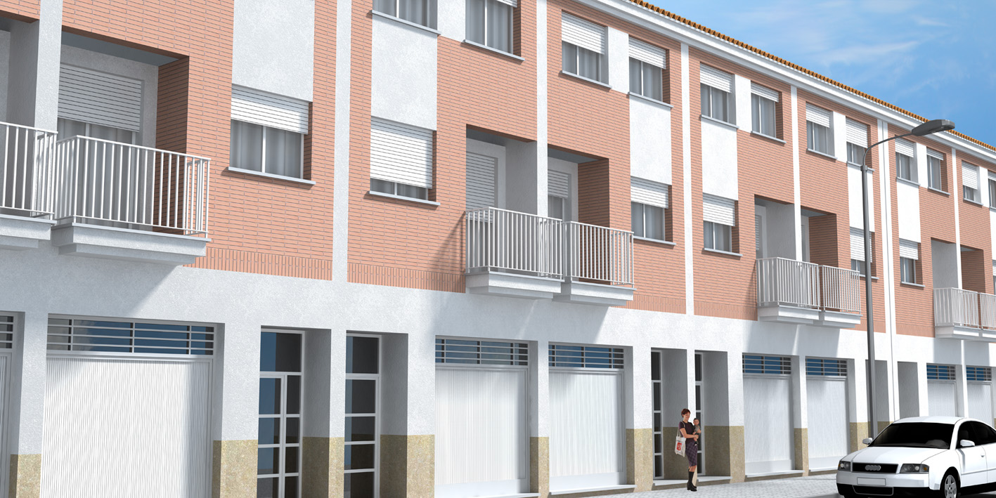 Está hecha con 3d Studio y Vray, el modelado de las casas en AutoCAD.