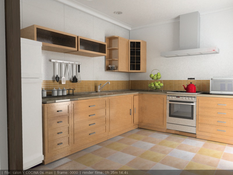 Buenas, adjunto una cocina que estoy haciendo y no consigo que me quede bien, ya no sé que cambiar para que se vea mejor, agradecería consejos y sugerencias para arreglarla, gracias de antemano y saludos. Max + Vray.