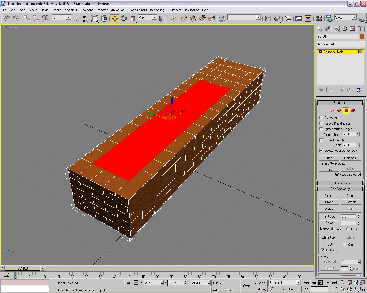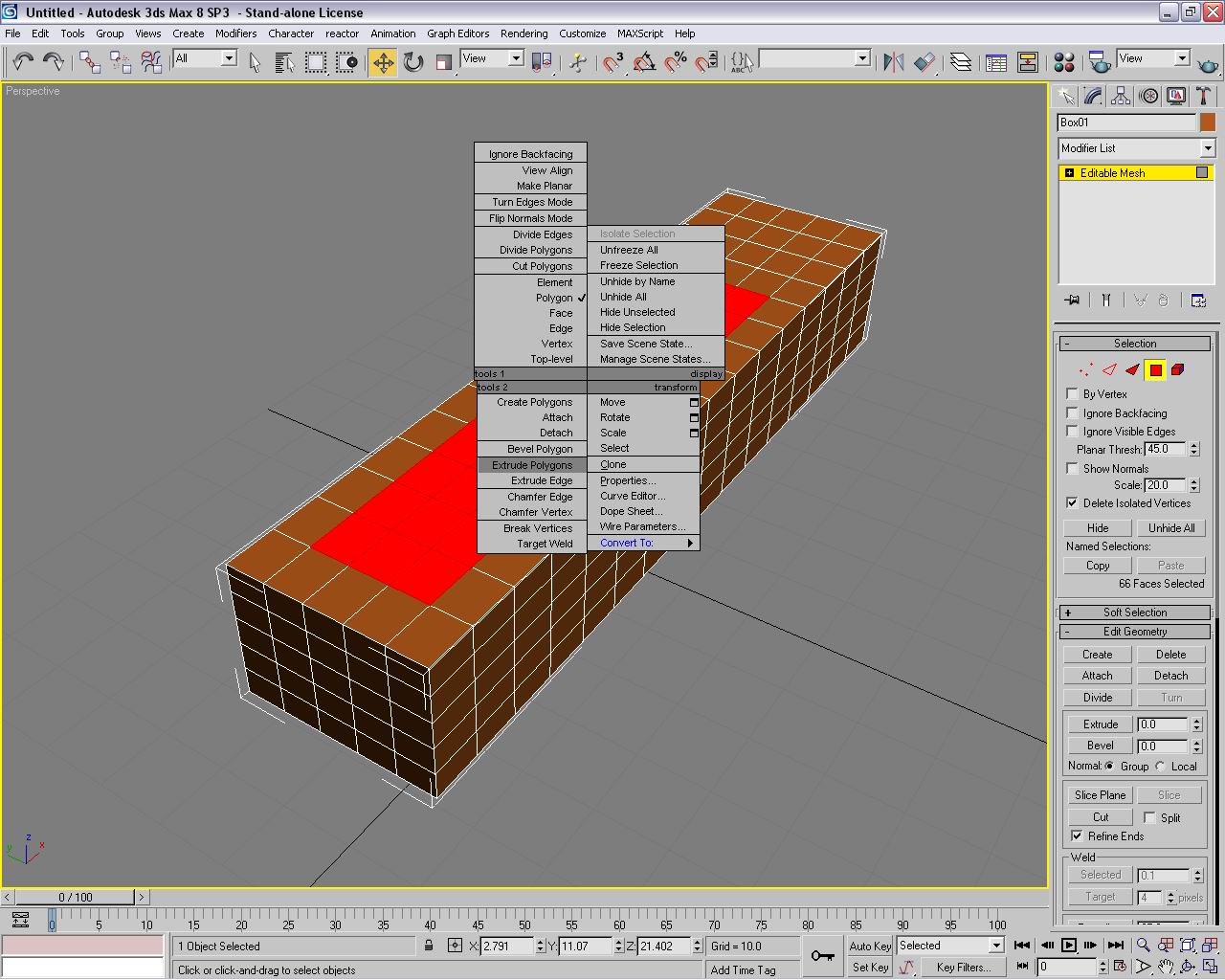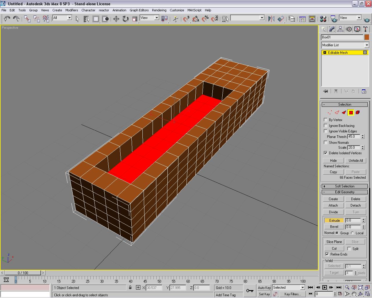 4, empujas lo seleccionado con el extrude Polygons hasta la profundidad que deses.