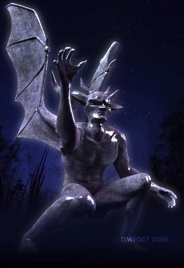Hola dmv007, el modelado me gusta. Yo no le pondría Glow, en la segunda imagen no tiene, pero en la primera si y me gusta más sin, ya que una gárgola es de piedra y no reluce, luego me da la sensación que tienes un pequeño fallo en el mapa UV, justo debajo del cuello, no sé, a lo mejor es solo de visualización, ya se sabe, el Bump no siempre da el resultado que esperas, y por último, que para que veamos bien el modelo la iluminación ya está bien, pero para darle más sensacionalidad creo que sería mejor oscurecer un poco el modelo, está muy claro para estar en la noche.