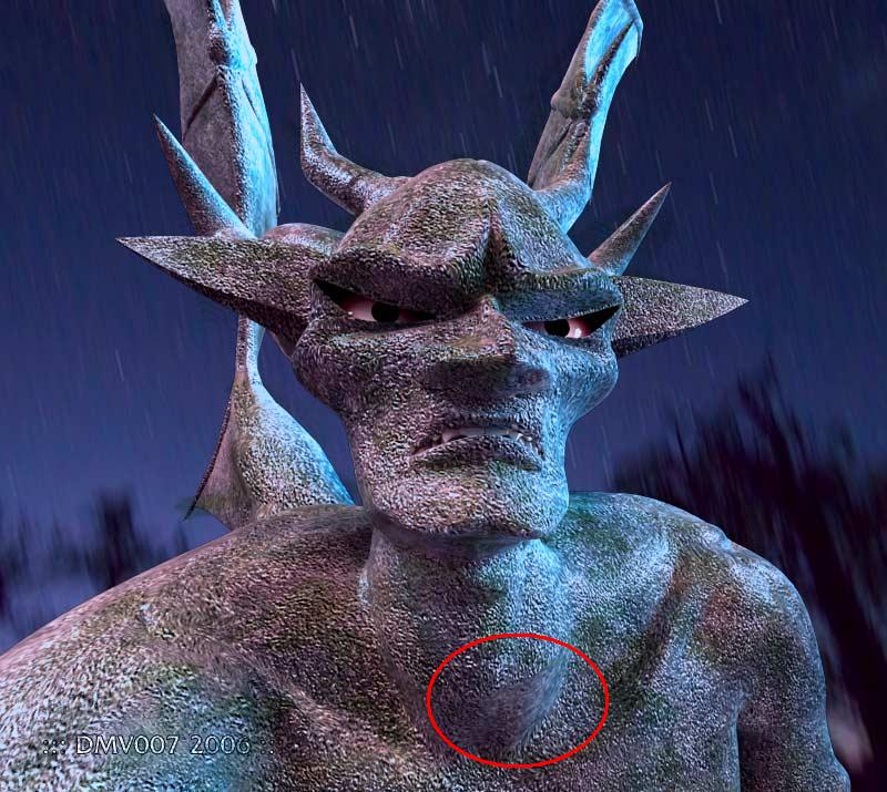 El material las gárgolas acumulan mucha suciedad y zonas oscuras en la superficie, si le das unos cuantos retoques le puedes dar mucho más juego a tu modelo. Saludos.