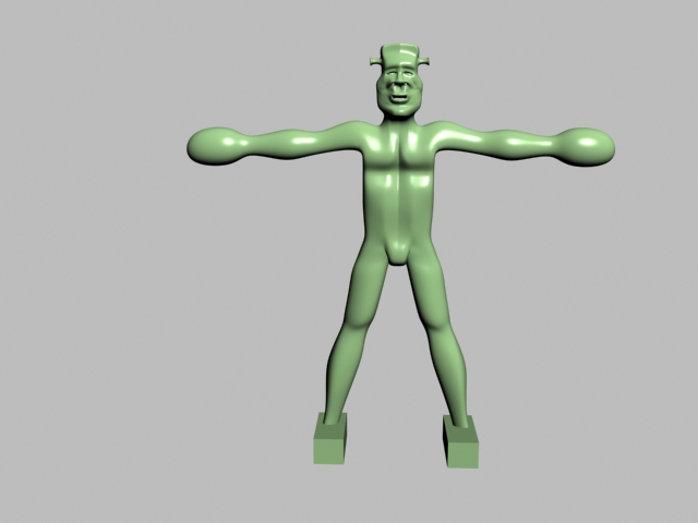 He intentado hacer un personaje sencillo, estilo cartoon, para pruebas de animación. No sé si lo he logrado. Es un Frankenstein boxeador.