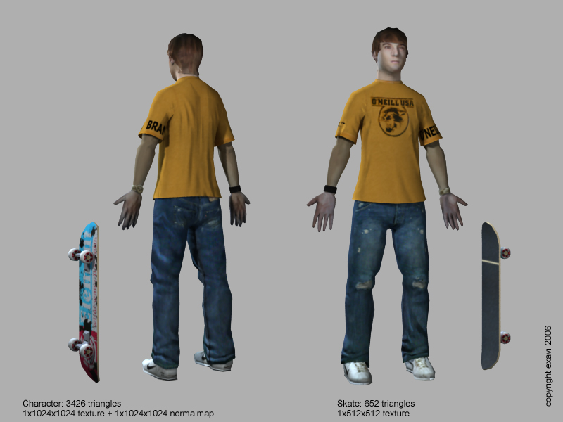Posdata: mi intención era que quedará un personaje al estilo de los de los juegos Tony Hawk, con una cantidad razonable de polígonos (ni muchos ni pocos, más bien tirando a pocos).