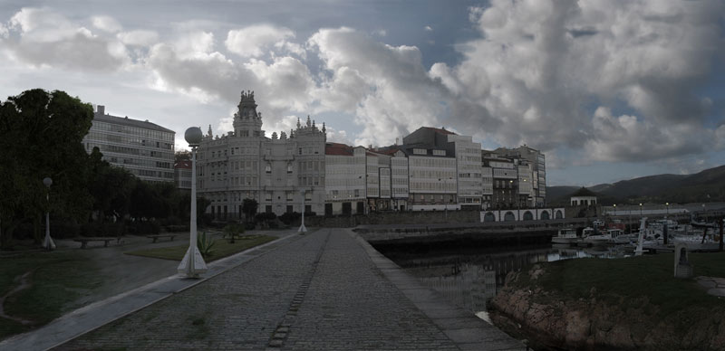 Coño Cserbuj, eres de Coruña y yo sin enterarme, tenemos que quedar algún día para tomar un café y marujear de 3d. Respecto al matte lo del edificio que ya te ha comentado Daniel y Pit, la perspectiva no acaba de coincidir, otra cosa que se me hace un poco rara es la base de la farola del primer plano, no queda muy bien, parece como si la fotografía que sacaste de la darsena tuviese una altura o apertura Focal diferente del de la farola, por otro lado, la sustitución del carril bici, el terreno rocoso en medio del agua y el fondo te quedaron cojonudos lo único que quizás le añadiría sería un alo dorado muy suave al techo de los edificios del lado izquierdo de la imagen ya que de allí parece provenir la iluminación que afecta a las nubes.