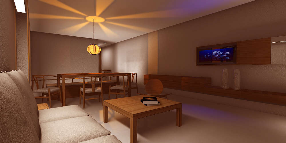 A mí me gusta mucho la iluminación que le has dado, tan sólo colocaría algún cuadro en la pared. Algo de algún color vivo.