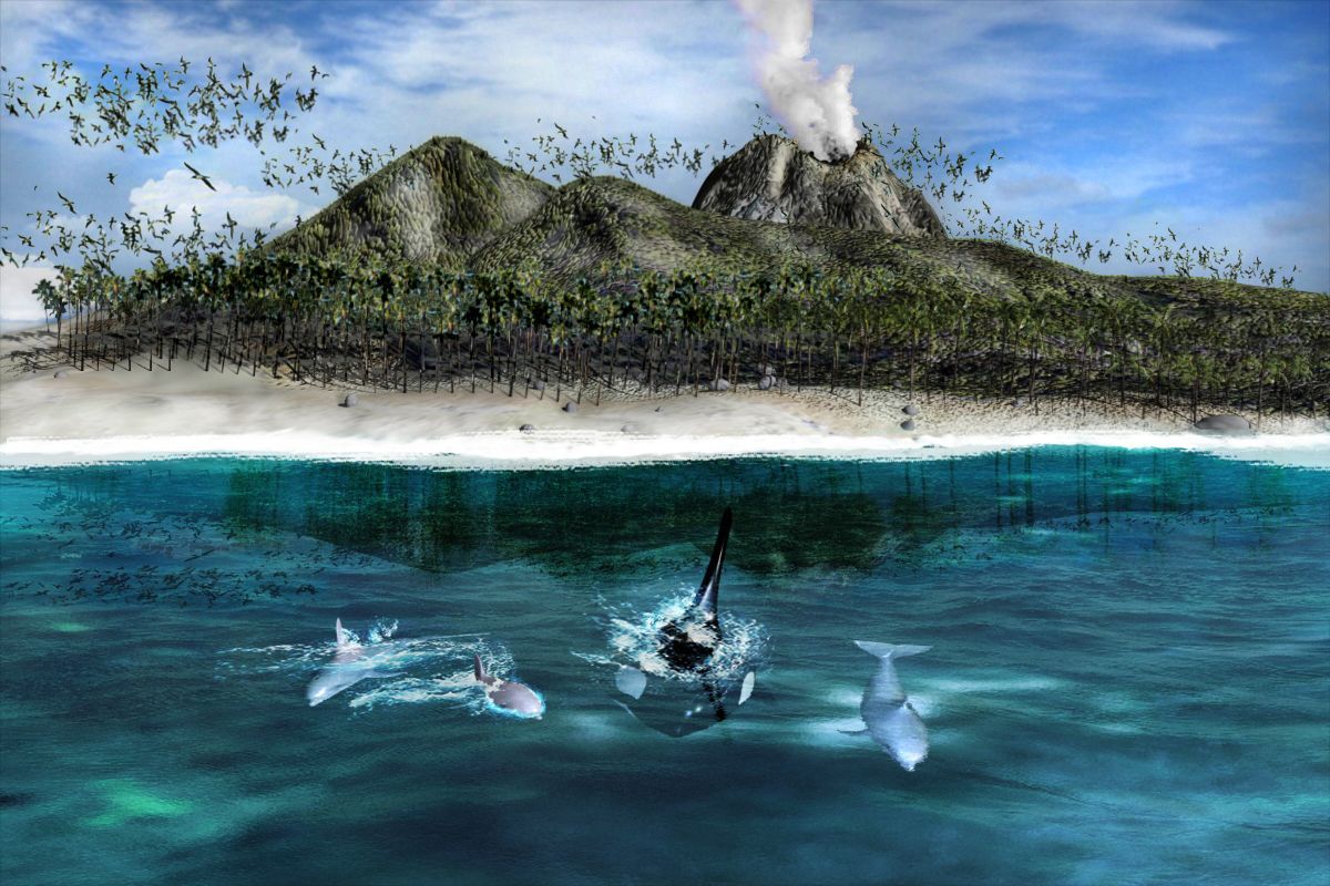 Hola, no sé porque, pero me recuerda a la portada de un videojuego, te has pasado poniendo parajros, y croe que los delfines están fuera de escala, ánimo.
