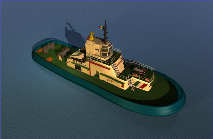 Yo soy del puerto de pasajes y los remolcadores que circulan por allí son como el de la imagen que adjunto. Por lo demás me gusta mucho cómo va quedando.