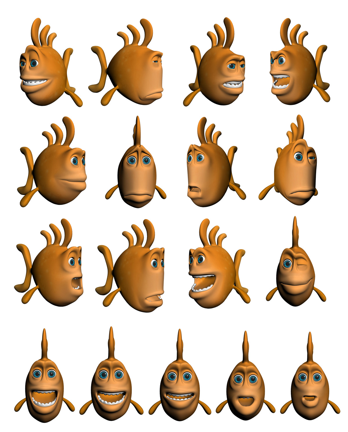 Aquí dejo este pezecillo, es bastante simple, lo que quería con este ejercicio era practicar con el morphista, así que, e dejado un poco más descuidado modelado y textura, e dejado unas cuantas de las expresiones que se pueden sacar.