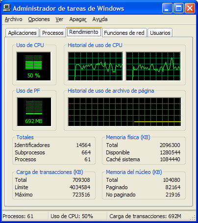 Pues ahora, estoy haciendo para mí proyecto unas simulaciones con matlab, y necesitaría que la máquina que funcionase al 100 % para no tener que dormirme cada vez que simulo. Sé que cuando renderizo, la utilización de la CPU sí es del 100 %, pero no sé porque, con matlab, llega al umbral del 50 % y ahí se para. Además, no es ni siquiera porque sólo utilice uno de los dos núcleos, sino que lo hace de manera que, utiliza los dos, al 50 %. Os he puesto una captura para ver si me podéis ayudar.