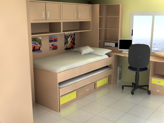 Hola amigos de 3d poder, os dejo unos renders de mi último trabajo: mi cuarto. Espero que os guste. Saludos.