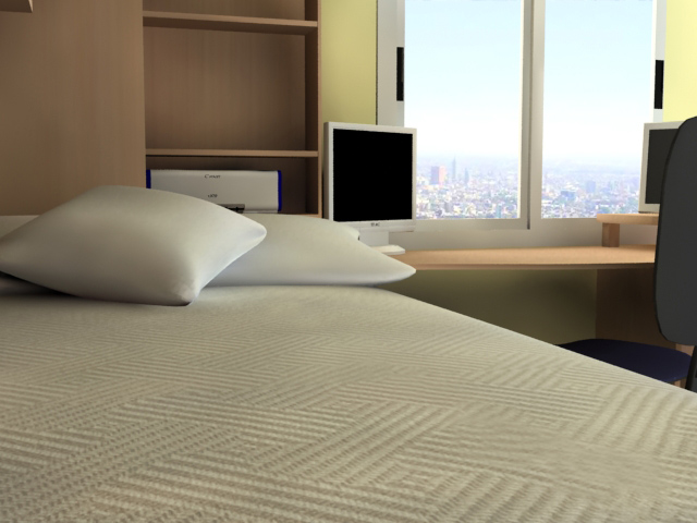 Es así en la realidad? A la cama la veo muy alta. Saludos, hay que arreglar algunas texturas y el fondo de la ventana.