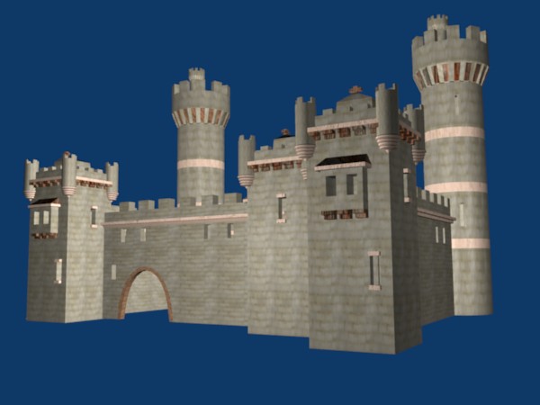 Vale. Me gusta más, pero creo que algo no hago bien. ¿Tengo que mapear un muro completo y ajustarlo al mapa en la ventana UV, o por trozos y después ajustarlos? ¿por qué la torre cilíndrica queda distorsionada?