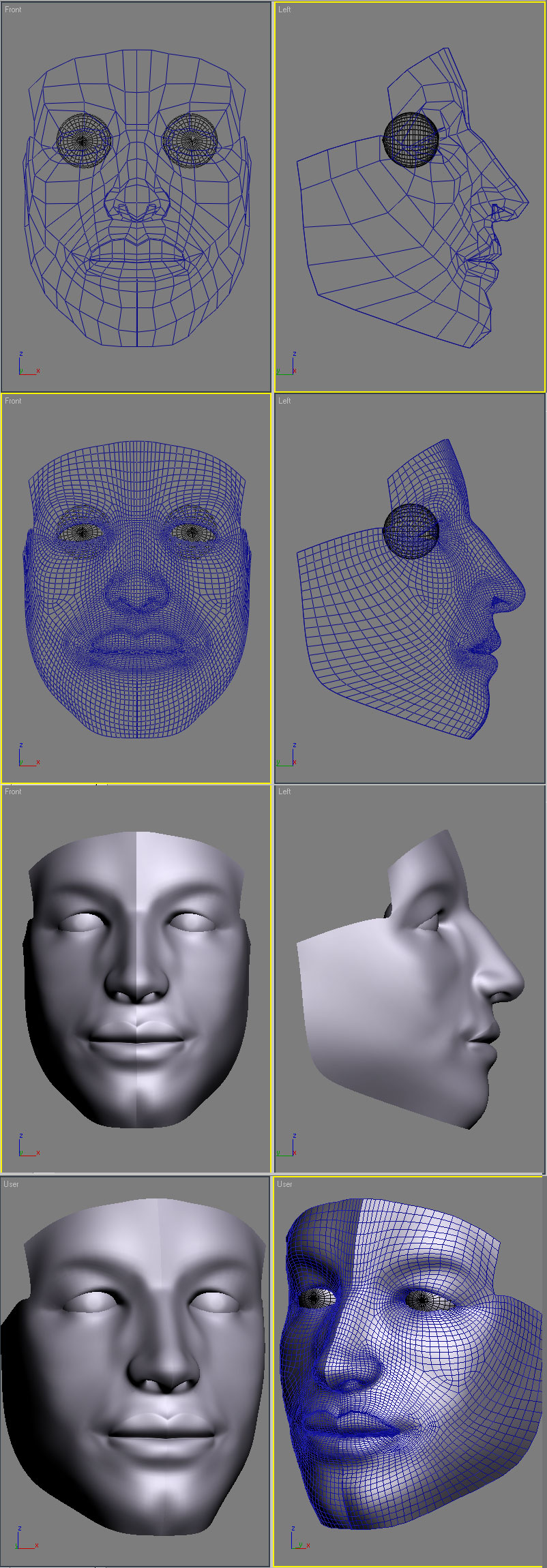 Bueno como dije esta tarde subiré algún avance y alguna captura con la malla, necesito un poco de ayuda porque no tengo muy claro cómo se modela, si hay alguna metodología a seguir o a bolea como voy yo, y es que la falta de experiencia manda mucho. Yo normalmente empiezo creando una esfera que define el globo ocular y a partir de ella empiezo a modelar polígono a polígono los párpados y el resto. El problema que yo veo con esta técnica es que empiezo detallando muchísimo desde el principio, y he visto por ahí gente que empieza haciendo un objeto muy simple y va subdividiendo la malla y definiendo el modelado, no sé qué es mejor, pero desde luego de la manera que yo lo hago es bastante tedioso, venga a ver si alguien se anima y me echa un cable. Un saludo gente.