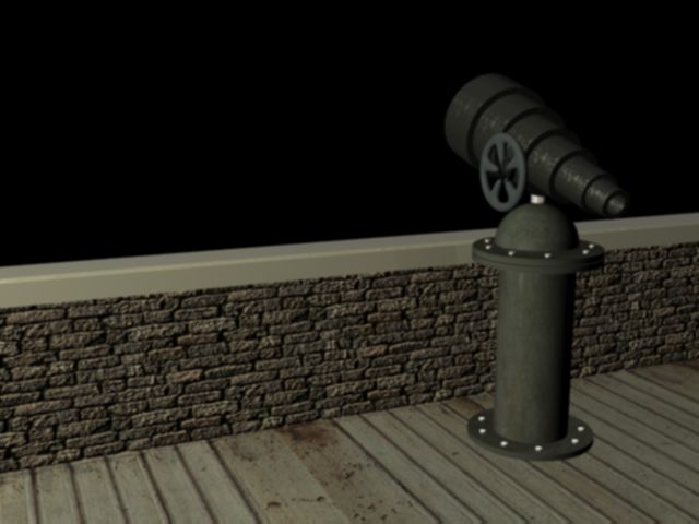 La escena ganaría mucho si metes en el mapa de entorno un buen paisaje marino, por ejemplo. En vez de negro. Porque ya me dirás que estará mirando un tipo por ese catalejo con esa oscuridad.